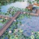 现代荷花池 荷花锦鲤 鱼群火烈鸟 木船木舟 荷叶 公园水景 木栈道观景台