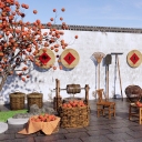 中式乡村小品 秋收农村院子 柿子树 晒柿子 农耕农具 竹篮竹筐 竹