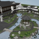 新中式别墅庭院 中式庭院花园 居住区前庭水景 小品