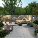 现代禅意别墅庭院 现代庭院 流水景墙 现代自然庭院 庭院操作台