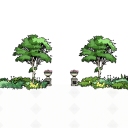现代风格手绘植物组合 园林景观大树 灌木植物 花钵