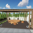 中式别墅庭院景观设计笔记本电脑 打印机 显示器 复印机(打印机) 草地