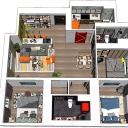 北欧风格家居客厅玄关餐厅卧室卫生间厨房吧台三室两厅室内空间